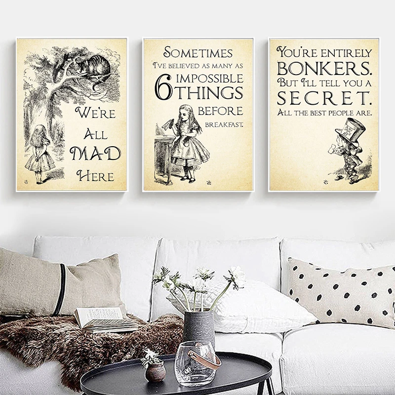 Disney Cartoon Movie Alice In Wonderland Canvas Painting Wall Art Mad Hatter Quotes Retro Poster And Prints For Home Decor Painting Calligraphy Aliexpress