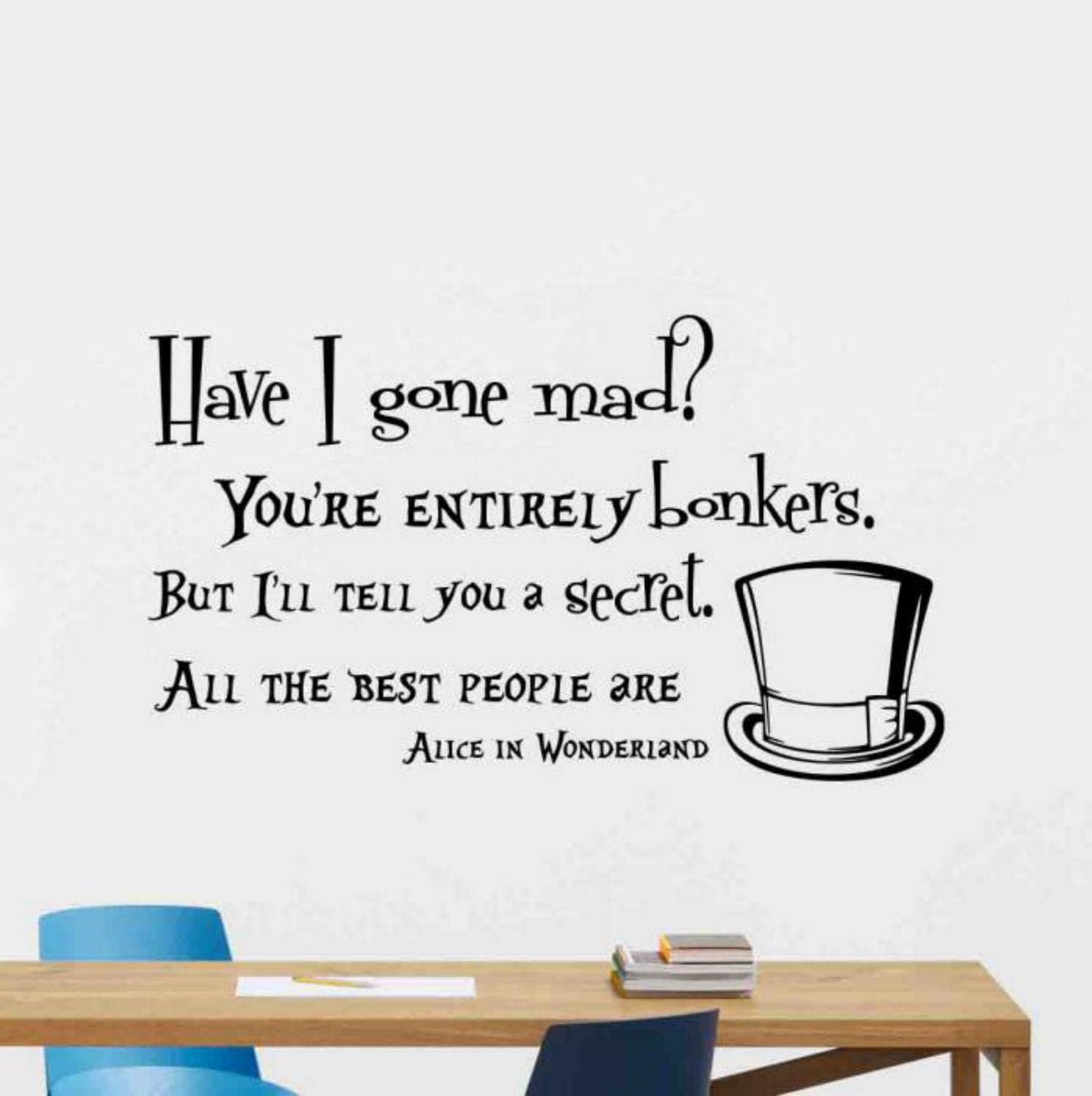 Have I Gone Mad Wall Decal Alice In Wonderland Quote Vinyl Sticker Sign Mad Hatter Hat Poster Disney Sign Playroom Gifts Game Room Pooh Wall Decor Nursery Wall Art Baby Kids Room